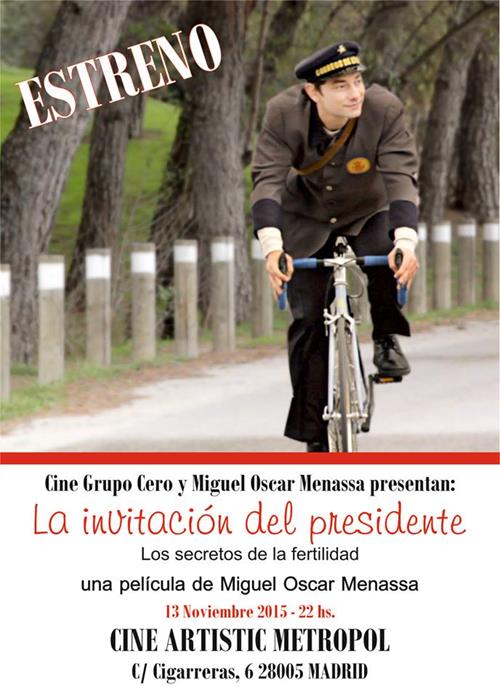 Madrid. 13 de Noviembre de 2015- El Cine Artistic Metropol se ha convertido en el escenario del estreno en Madrid de “La invitación del presidente” el nuevo largometraje de Miguel Oscar Menassa. A la cita acudieron artistas e invitados en un ambiente de júbilo provocado no solo por la premier de la película sino por la noticia de que el nuevo largometraje de Producciones Cinematográficas Grupo Cero y de Miguel Oscar Menassa ha sido elegido para participar en los Premios Goya 2016 con presencia en 19 candidaturas, entre las que se encuentran las de Miguel Oscar Menassa a mejor película, mejor dirección, mejor guión y mejor actor, Alejandra Menassa a mejor actriz protagonista, Virginia Valdominos a mejor actriz revelación y Manuel Menassa, a mejor director de fotografía.